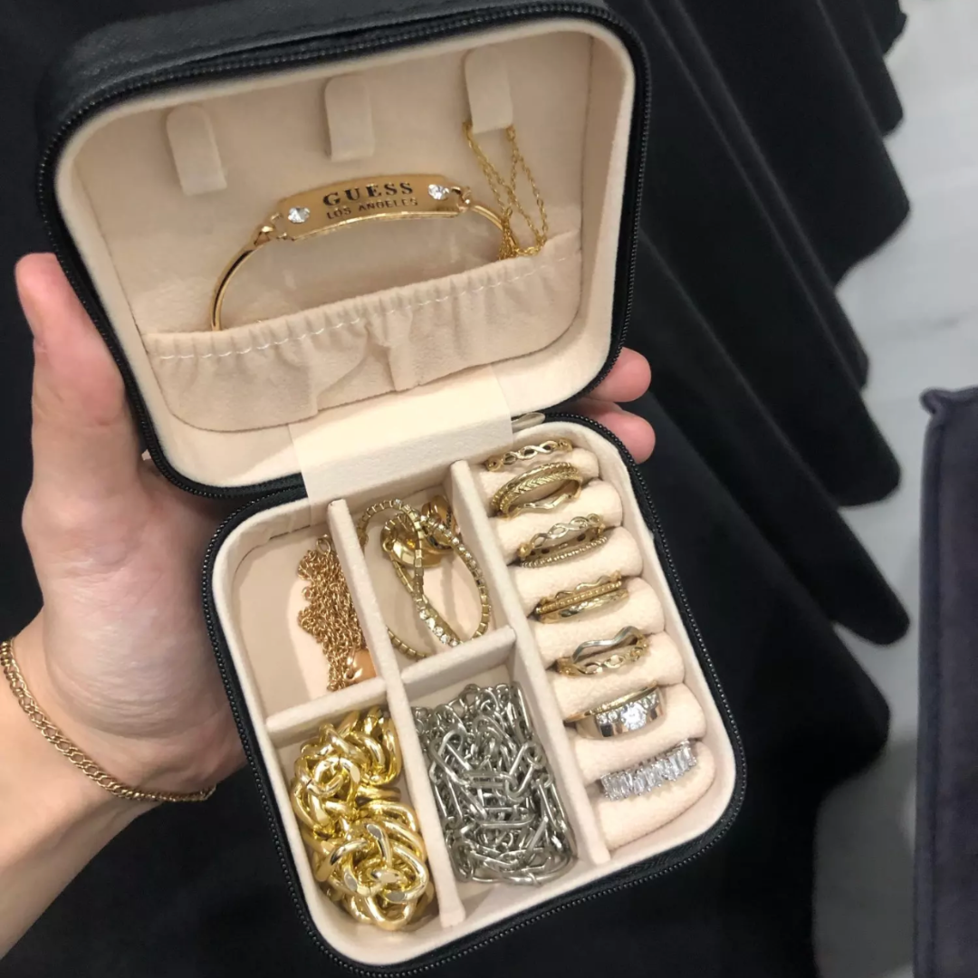 stainless zipper attached high quality hardcore cover organiser box with 3 compartments . Store any of your accessories without getting messy